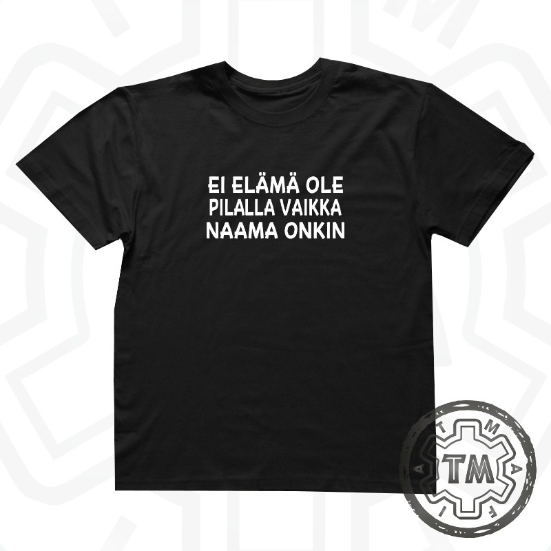 Rennon itseironinen ja suoraan suomalaiseen huumoriin osuva T-paita, joka ei turhia selittele. Teksti “Ei elämä ole piloilla vaikka naama onkin” yhdistää kuivakan huumorin ja asenteen tavalla, joka saa hymyn huulille – tai ainakin nyökkäyksen hyväksyvästi.