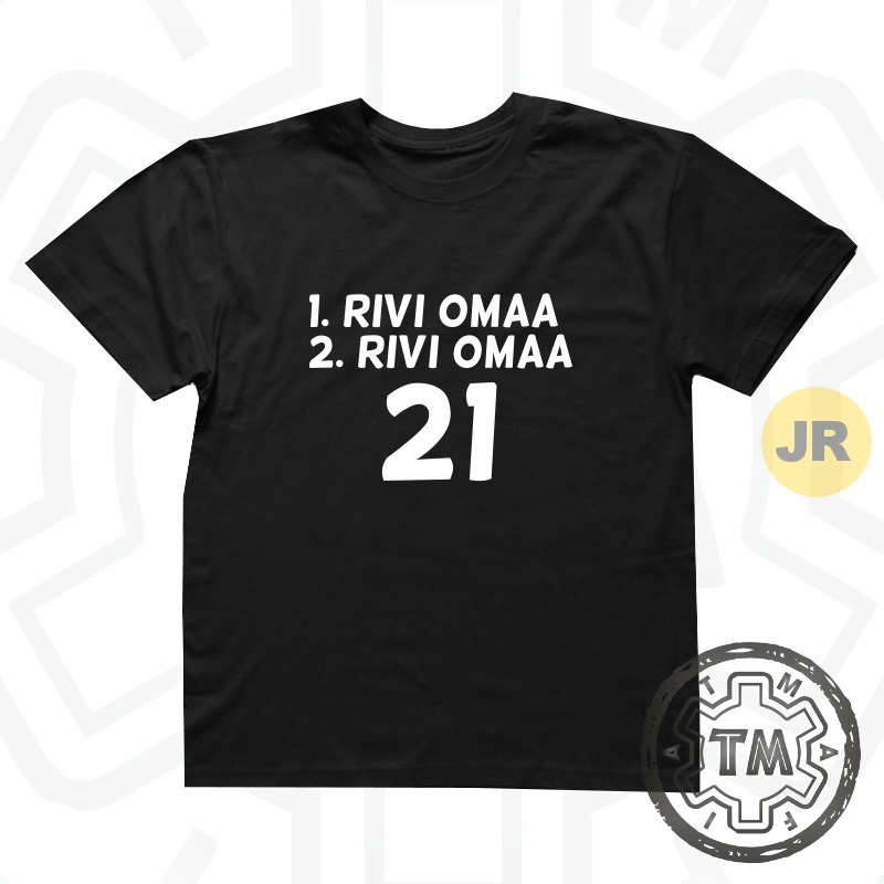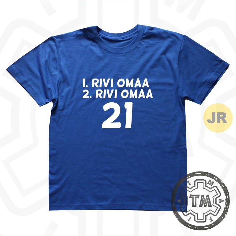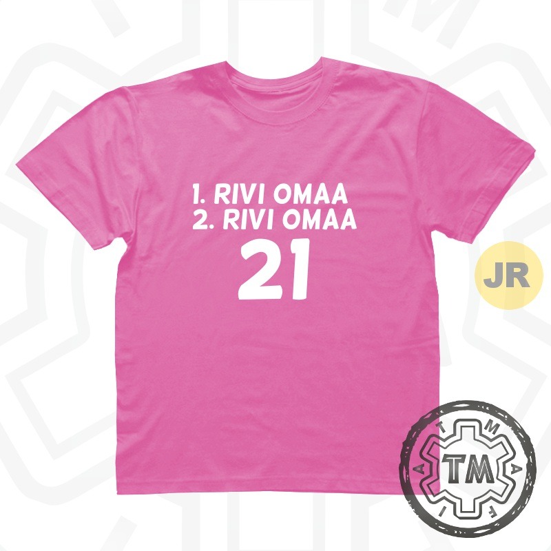 Tähän paitaan saa halutessa valita kaksi riviä tekstiä ja numeron.