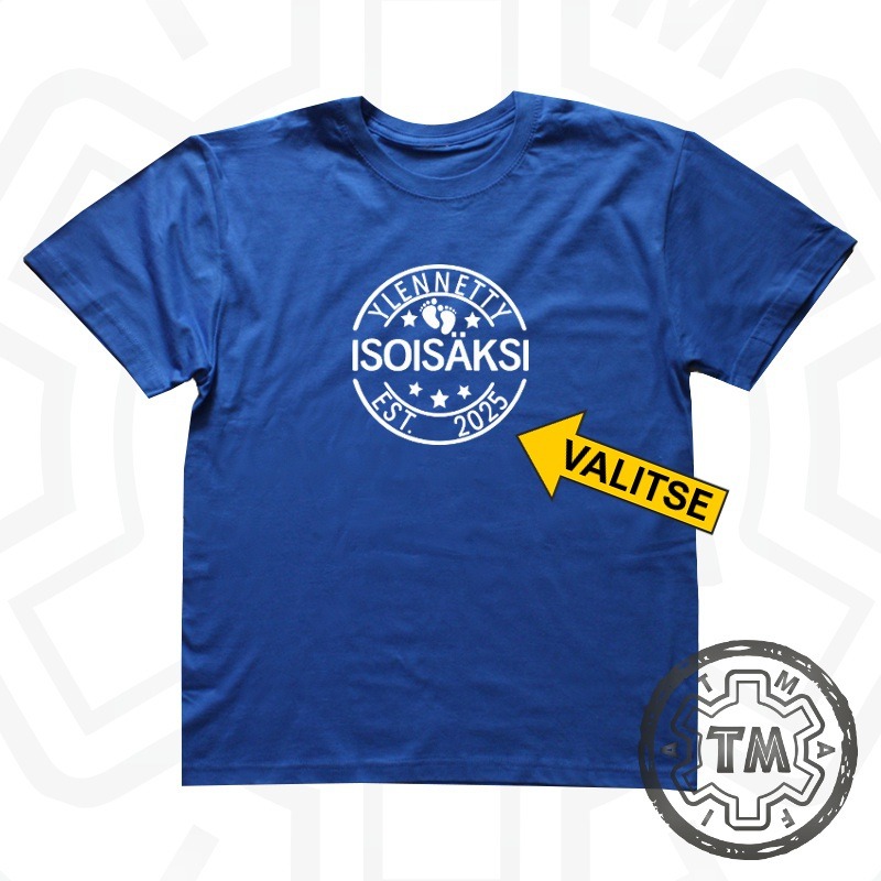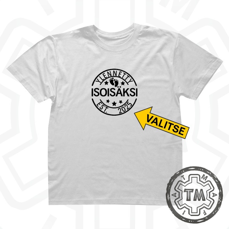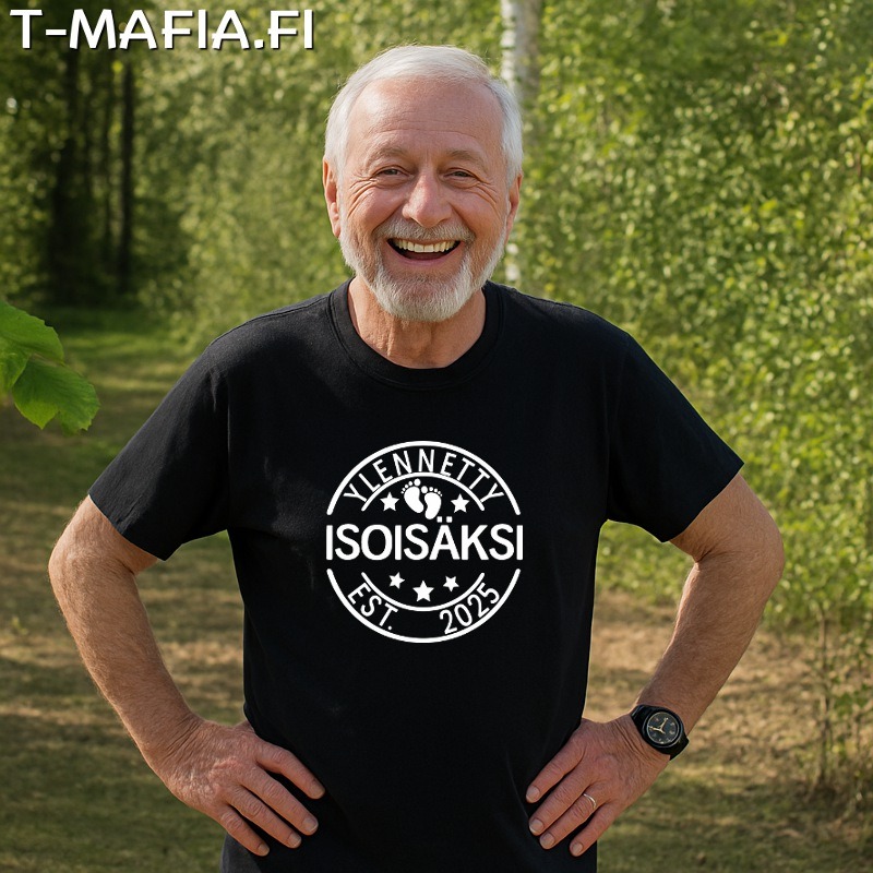 Hänet on ylennetty isoisäksi. Loistava lahjaidea tuoreelle papalle tai ukille. Voit valita tähän paitaan oman vuosiluvun.